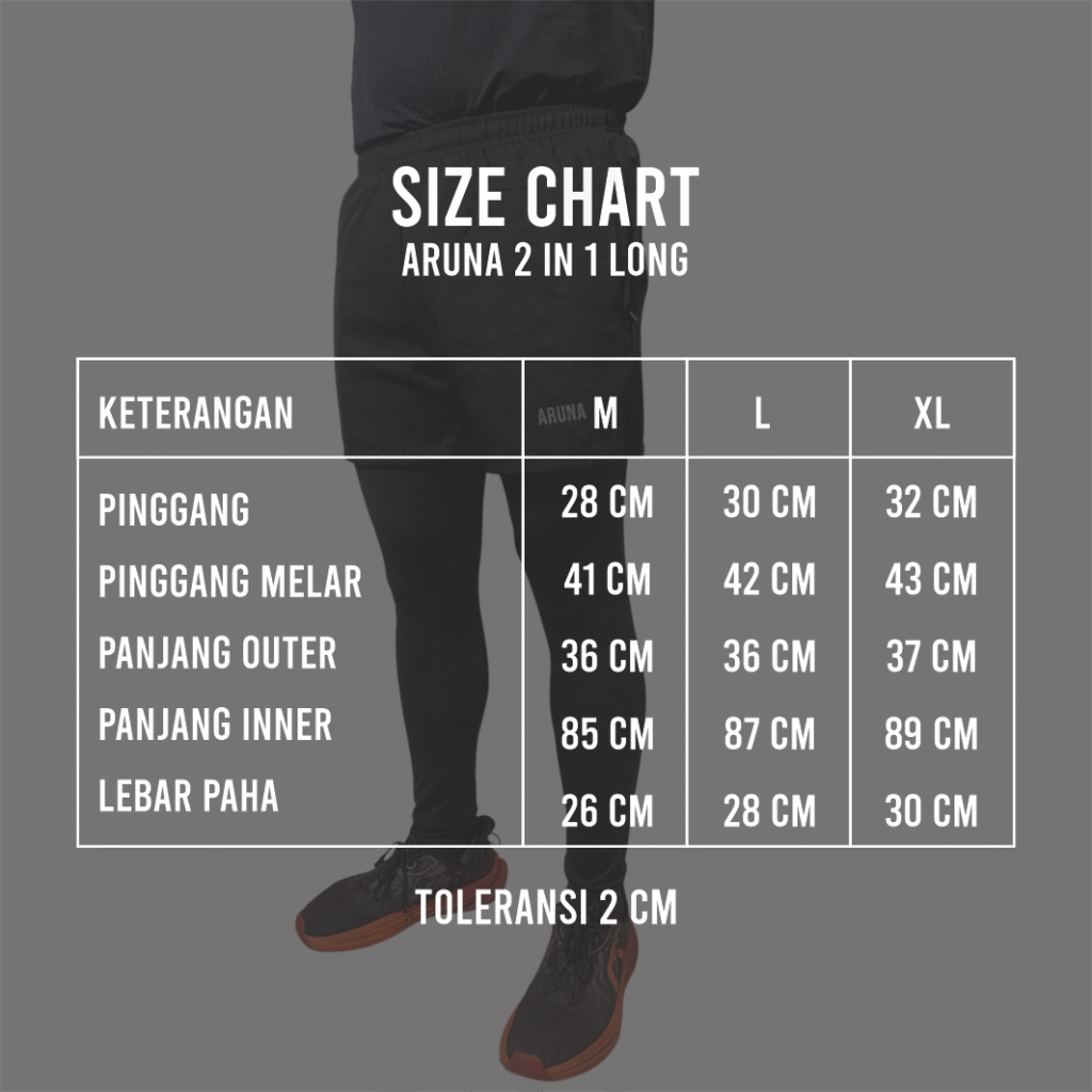 Dilengkapi dengan tali bagian dalam dan karet elastik di bagian pinggang, celana ini pas di badan dan tetap nyaman digunakan sepanjang aktivitas. Saku samping beresleting menjaga barang penting tetap aman, dan tambahan sablon reflektive meningkatkan visibilitas saat digunakan di kondisi minim cahaya. Dengan desain yang modern dan fungsional, Aruna 2 in 1 Long cocok untuk lari, latihan, atau aktivitas outdoor lainnya.
